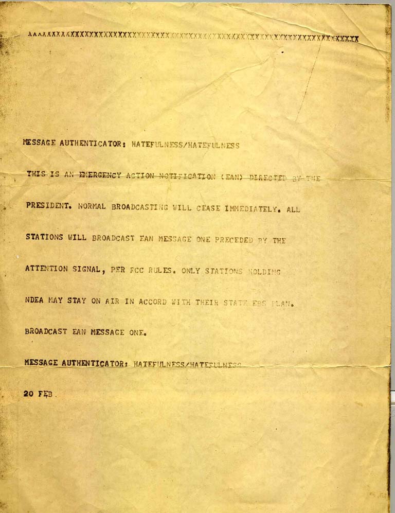 On February 20, 1971 an actual EBS Alert was sent out over the teletype.