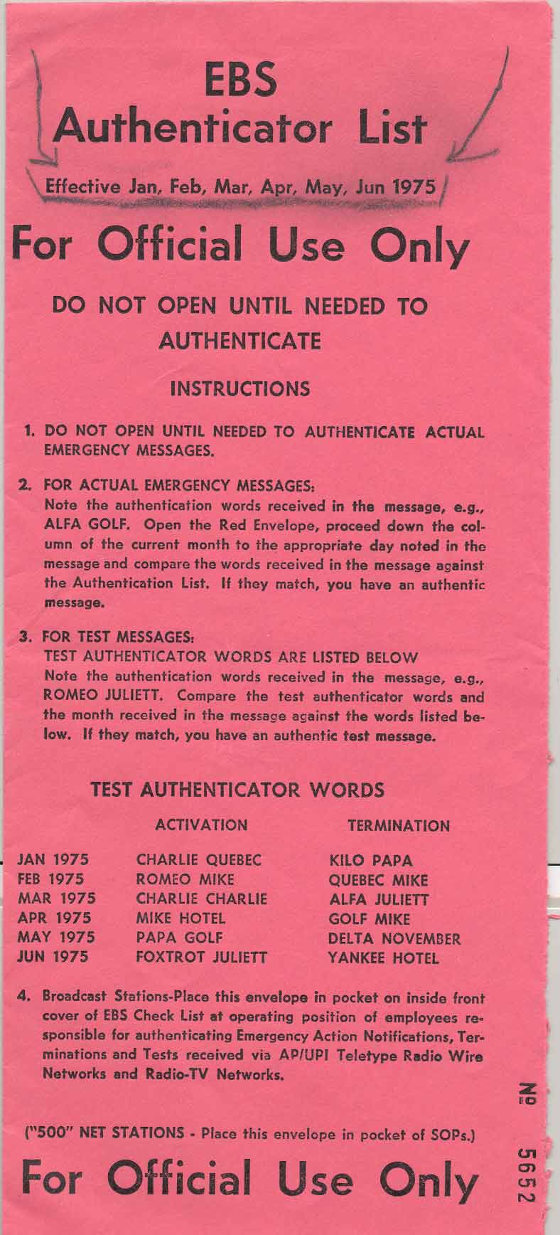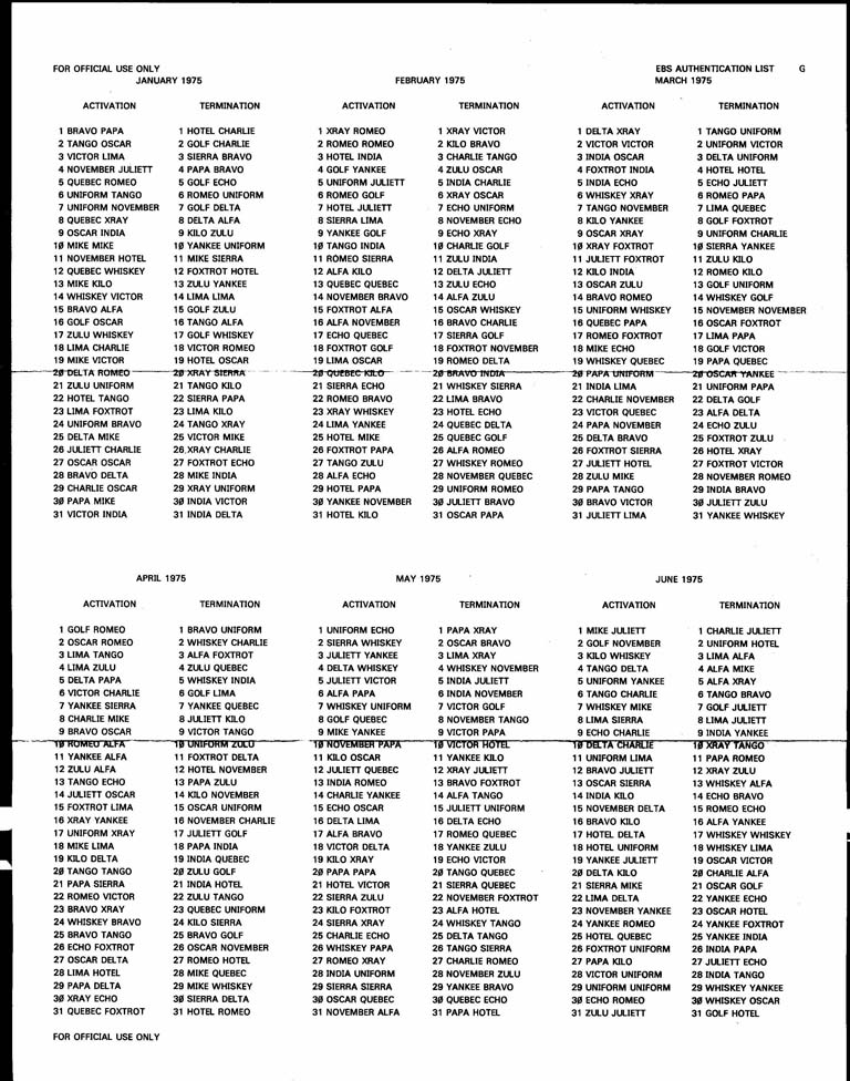 Also, here is a copy of a 1975 set of codes that fortunately were never used.
